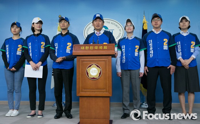 (서울=포커스뉴스) 더불어민주당에서 공천 탈락한 정청래, 김광진, 장하나 의원과 김빈 청년 비례대표 후보, 이동학 예비후보 등으로 구성된 '더컸유세단'이 28일 오전 서울 여의도 국회 정론관에서 출범 기자회견을 하고 있다.
