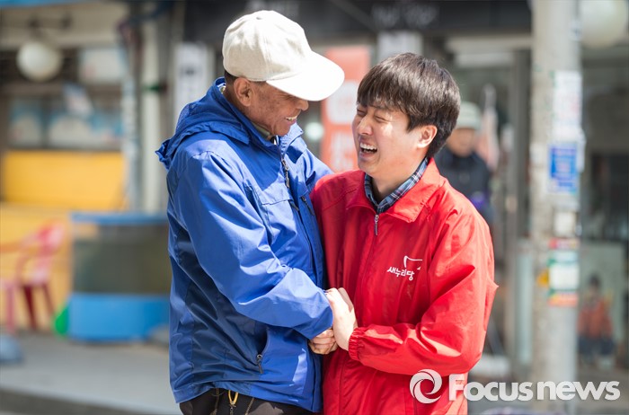 (서울=포커스뉴스) 이준석 새누리당 노원병 후보가 28일 오후 서울 노원구 당고개역 앞에서 선거 유세를 하고 있다.