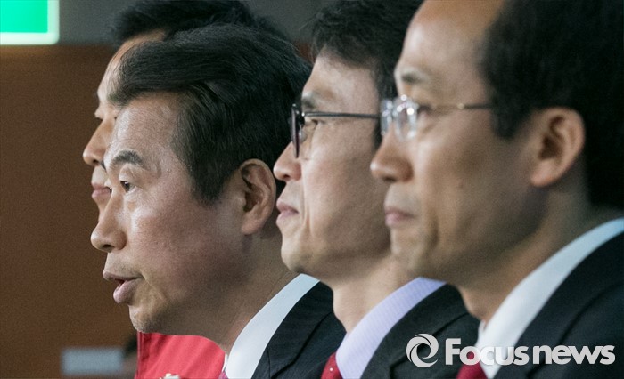 이어 "그렇기에 은평을 지역구의 선거중지 가처분신청을 내고자한다"면서 "만약 이대로 계속 선거가 진행된다면 선거무효 소송을 포함한 모든 수단을 동원해서 추가적인 법적 조치를 취해 나갈 것"이라고 덧붙였다.김무성 새누리당 대표가 무공천을 선언한 지역구 후보들이 지난 25일 오전 서울 여의도 국회 정론관에서 기자회견을 하고 있다. 왼쪽부터 유영하(서울 송파구을), 정종섭(대구 동구갑), 류재길(서울 은평구을), 추경호(대구 달성) 예비후보. 2016.03.25 박철중 기자
