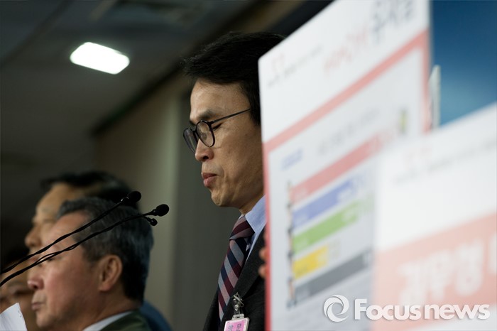 (서울=포커스뉴스) 새누리당의 무공천 결정으로 4.13 총선 서울 은평을 출마가 무산된 유재길 예비후보가 28일 오후 서울 영등포구 국회 정론관에서 무공천 결정에 관한 대응 방안을 발표 하고 있다.