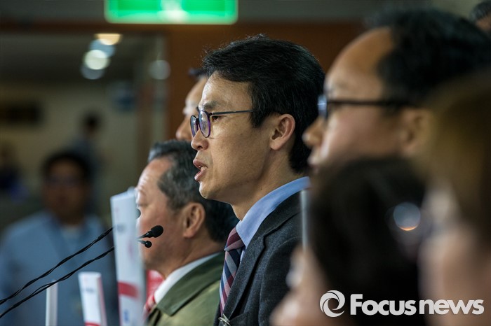 (서울=포커스뉴스) 새누리당의 무공천 결정으로 4.13 총선 서울 은평을 출마가 무산된 유재길 예비후보가 28일 오후 서울 영등포구 국회 정론관에서 무공천 결정에 관한 대응 방안을 발표 하고 있다.