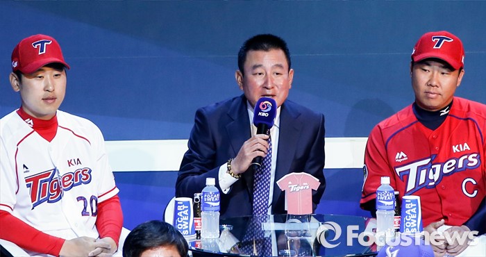 (서울=포커스뉴스) 28일 오후 서울 용산구 브루스퀘어 삼성카드홀에서 열린 '2016 타이어뱅크 프로야구 미디어데이 & 팬페스트' 행사에 참석한 기아 타이거즈 김기태 감독이 새 시즌 출사표를 밝히고 있다.