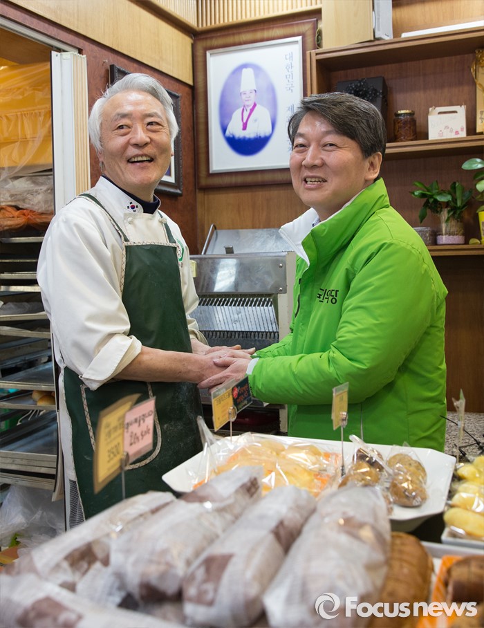 제과점에서 인사 나누는 안철수