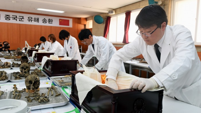 (서울=포커스뉴스) 한국과 중국 두 나라 정부는 6‧25전쟁에 참전했다 전사한 중국군 유해에 대한 입관식을 28일 진행했다.