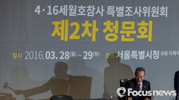 이에 대해 강상보 제주 센터장은 "해당 보고서를 검찰에 제출한 부분은 기억이 나지 않는다"고 말했다.(서울=포커스뉴스) 28일 오전 서울시청 다목적홀에서 세월호 참사 특별조사위원회의 제2차 청문회가 열렸다. 이날 청문회에 참석한 이석태 위원장이 의사봉을 두드리며 개회를 선언하고 있다. 2016.03.28 양지웅 기자