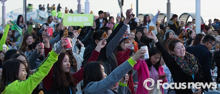 (인천=포커스뉴스) 28일 오후 인천 중구 월미 문화의 거리에서 중국 아오란 그룹 임직원 4500명이 치맥파티를 즐기고 있다.