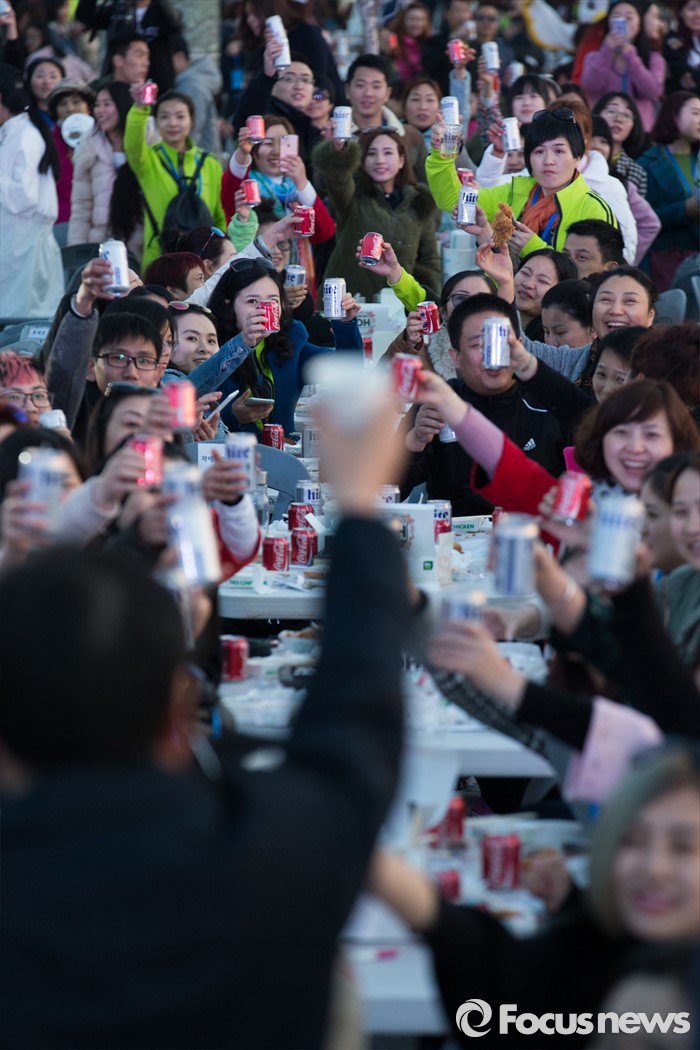 (인천=포커스뉴스) 28일 오후 인천 중구 월미 문화의 거리에서 중국 아오란 그룹 임직원 4500명이 치맥파티를 즐기고 있다.