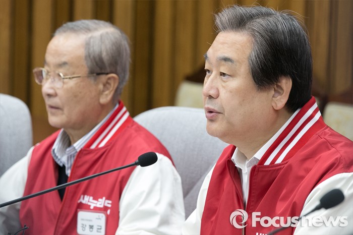 (서울=포커스뉴스) 김무성(오른쪽) 새누리당 대표가 29일 오전 서울 여의도 국회에서 열린 첫 중앙선거대책위원회의에 참석해, 모두발언하고 있다.