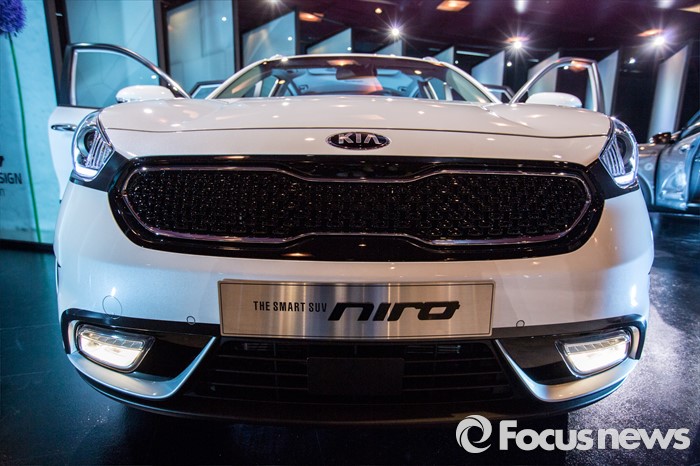 (서울=포커스뉴스) 29일 오전 서울 광진구 쉐라톤 그랜드 워커힐에서 기아차 친환경 소형 SUV '니로(NIRO)'가 공개돼고 있다.