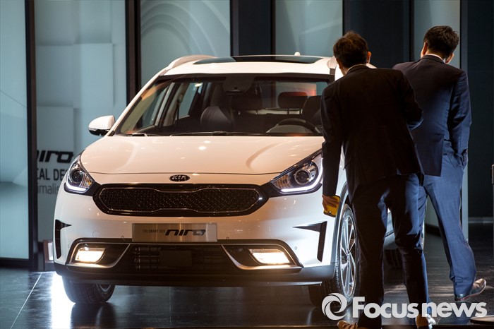 (서울=포커스뉴스) 29일 오전 서울 광진구 쉐라톤 그랜드 워커힐에서 기아차 친환경 소형 SUV '니로(NIRO)'가 공개돼고 있다.