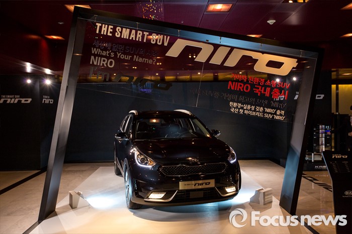 (서울=포커스뉴스) 29일 오전 서울 광진구 쉐라톤 그랜드 워커힐에서 기아차 친환경 소형 SUV '니로(NIRO)'가 공개돼고 있다.