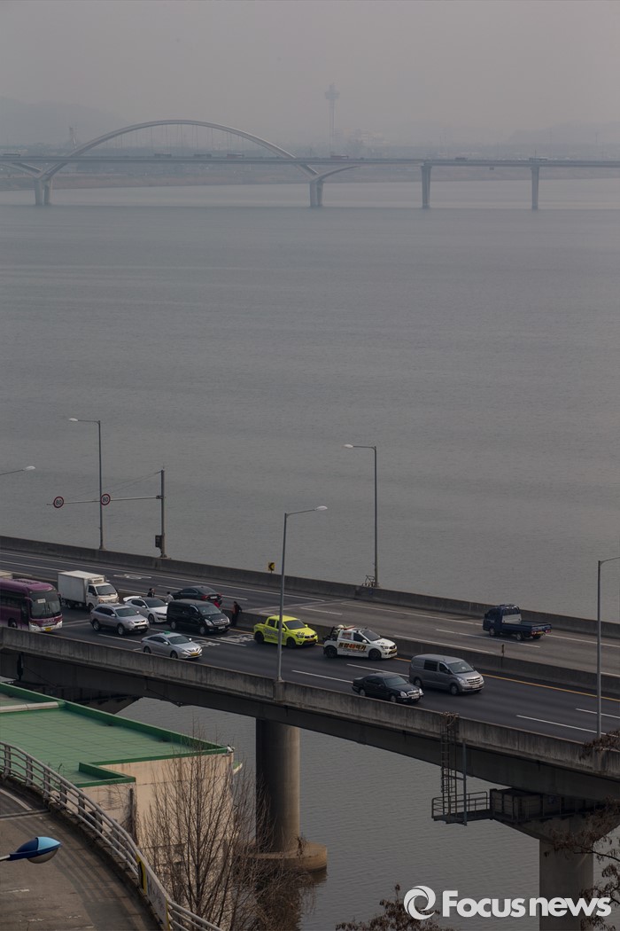 (서울=포커스뉴스) 국외 미세먼지 유입으로 '나쁨' 수준의 농도가 전 권역서 나타나고 있는 29일 오후 서울 광진구에서 바라본 도심이 미세먼지에 싸여 있다.