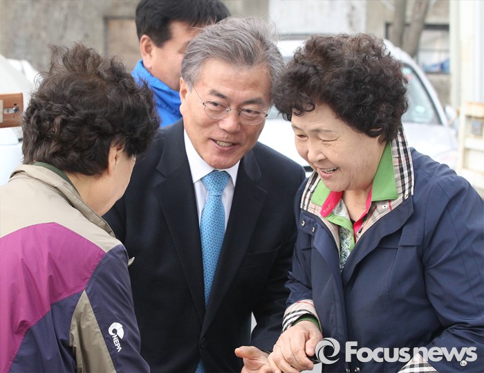 (논산=포커스뉴스) 문재인 더불어민주당 전 대표가 29일 오후 충남 논산시 중앙시장을 방문해 시민들과 악수하며 김종민 후보의 지지를 호소하고 있다.