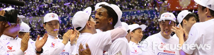 (고양=포커스뉴스) 29일 고양체육관에서 열린 2015-2016 프로농구 챔피언결정전 6차전에서 승리하며 4승 2패로 우승한 오리온 조 잭슨이 통역과 얼싸안고 있다.