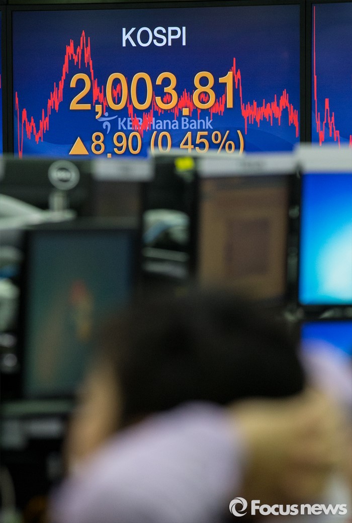 (서울=포커스뉴스) 30일 서울 중구 KEB외환은행 본점 딜링룸 전광판에 코스피 지수가 전일보다 8.90p (0.45%) 상승한 2003.81을 나타내고 있다. 이날 코스피지수는 재닛 옐런 미국 중앙은행(Fed) 의장의 비둘기파 발언에 힘입어 시가 기준 2000선을 돌파했다. 코스피가 시가 기준으로 2000선을 돌파한 것은 지난해 12월24일(2009.34) 이후 처음이다.