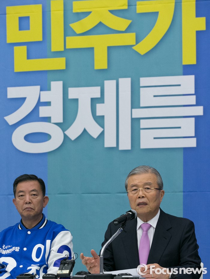(수원=포커스뉴스) 30일 오전 수원 팔달구 경기도의회에서 열린 더불어민주당 경제살리기 경기 국회의원 후보자 연석회의에 참석한 김종인(오른쪽) 비대위 대표가 모두발언을 하고 있다.