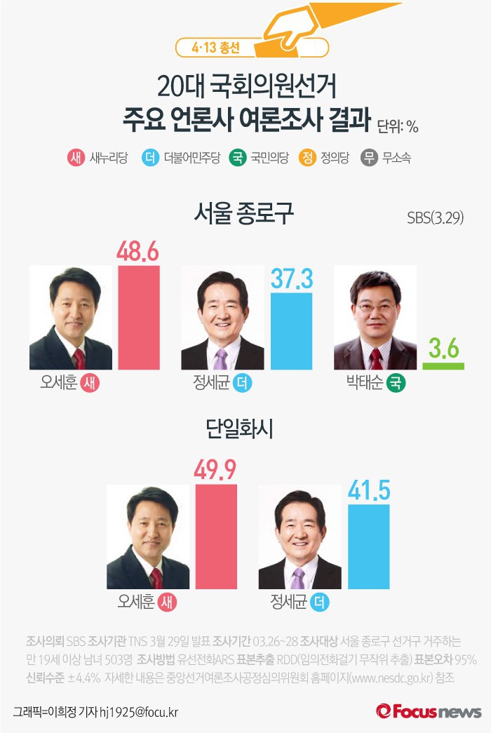 [그래픽] 4.13총선 서울 종로구 여론조사결과