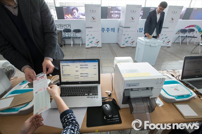 (서울=포커스뉴스) 제20대 국회의원선거를 14일 앞둔 30일 오후 서울 중구 서울역에 마련된 사전투표 모의체험장에서 시민들이 다음달 8일, 9일 실시되는 사전투표를 미리 체험할 수 있는 모의체험을 하고 있다.