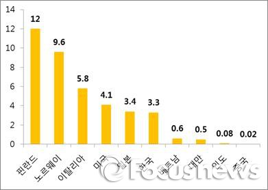 이날 플래그쉽 매장 오픈식에는 오기학 중국이랜드 대표와 에릭푸 커피빈 아시아 본부 COO 가 참석했다.국가별연평균_커피소비량.<사진제공=이랜드>