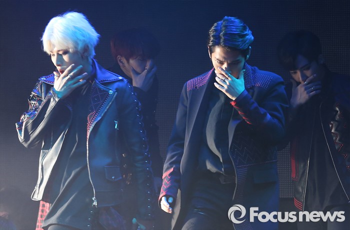 (서울=포커스뉴스) 30일 오후 서울 마포구 예스24 무브홀에서 열린 아이돌그룹 소년공화국의 세번째 미니앨범 [BR: evolution] 발표 쇼케이스에 참석한 멤버들이 'Get Down'무대를 선보이고 있다.