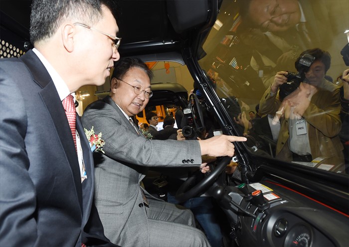 (일산=포커스뉴스) 유일호 부총리 겸 기획재정부 장관이 30일 경기 일산 킨텍스 전시관에서 열린 '2016 코리아 나라장터 엑스포'에 참석, 제품 시연을 하고 있다.