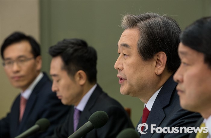 (서울=포커스뉴스) 30일 오후 서울 중구 프레스센터에서 열린 관훈클럽 초청 관훈토론회에 참석한 김무성 새누리당 대표가 모두발언을 하고 있다.