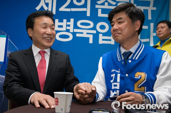(성남=포커스뉴스) 손학규 전 더불어민주당 상임고문이 30일 오후 경기도 성남시 김병욱 더민주당 분당을 후보 선거사무소을 방문해 김후보와 이야기를 나누고 있다.