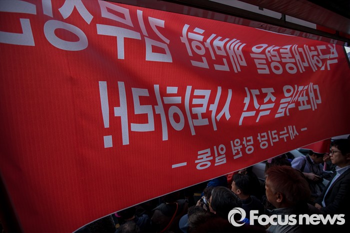 (대구=포커스뉴스) 30일 오후 대구 수성구 새누리당 대구시당 앞에서 이재만 새누리당 대구 동구을 예비후보 지지자들이 '선거대책위원회의'에 참석하기 위해 대구를 방문한 김무성 새누리당 대표에게 항의하기 위해 모여 있다.