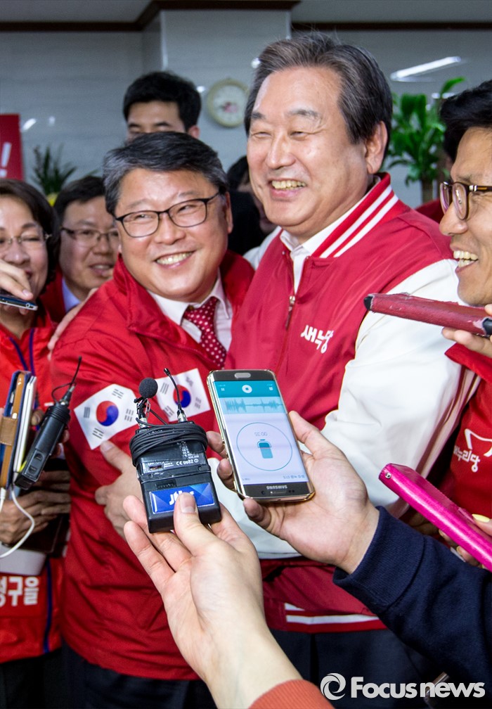 (대구=포커스뉴스) 김무성 새누리당 대표와 새누리당 대구 달서구병 조원진 후보가 30일 오후 대구 수성구 새누리당 대구시당에서 열린 '선거대책위원회의'를 마친 뒤 포옹 하고 있다.