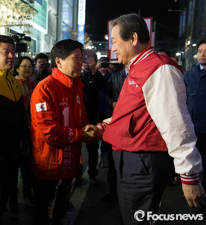 | △ 지상욱 후보와 악수하는 김무성 |