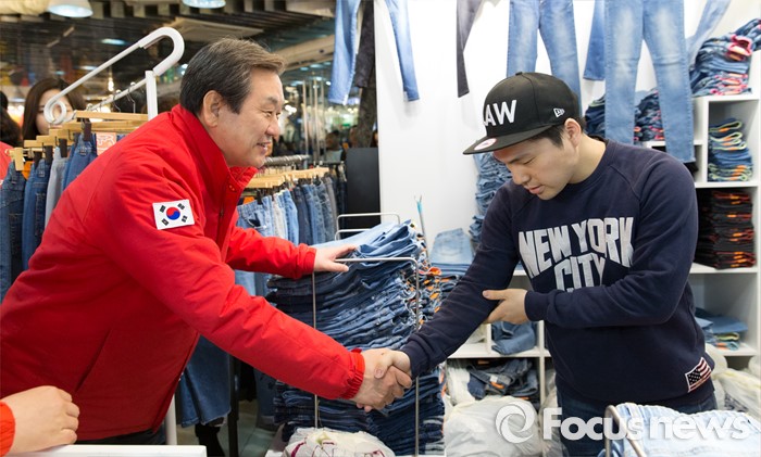 (서울=포커스뉴스) 4.13총선 공식선거운동 첫날인 31일 오전 서울 중구 동대문 누죤에서 김무성 새누리당 공동선대위원장이 지상욱 서울 중구성동구을 후보와 선거운동을 하고 있다.