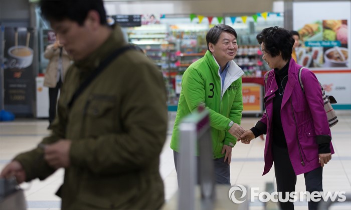 (서울=포커스뉴스) 총선 선거운동이 공식적으로 시작된 31일 오전 안철수 국민의당 노원병 후보가 서울 노원구 수락산역 역사 내에서 지역 주민들에게 출근 인사를 하고 있다.