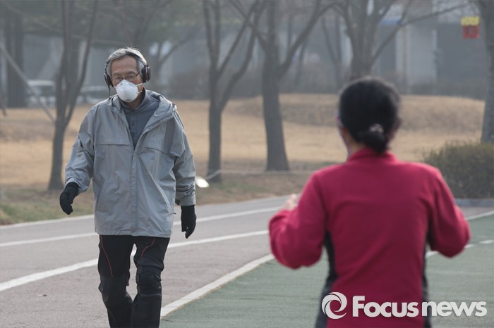 | △ 꽃샘추위에 운동하는 시민들 |