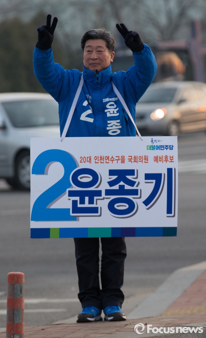 (인천=포커스뉴스) 제20대 총선 선거운동이 공식적으로 시작된 31일 오전 인천 연수구 한 사거리에서 윤종기 더불어민주당 연수을 후보가 출근하는 시민들에게 인사하며 지지를 호소하고 있다.