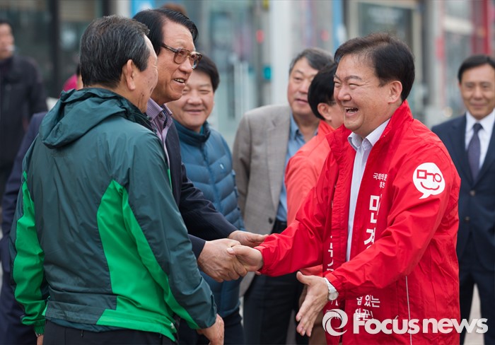 | △ 시민들에게 인사하는 민경욱 후보 |