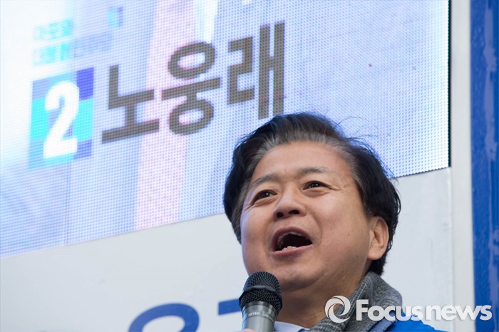 (서울=포커스뉴스) 20대 총선 공식선거 운동이 시작된 31일 오전 서울 마포구 공덕오거리에서 노웅래 더불어민주당 마포갑 후보가 출정식을 하고 있다.