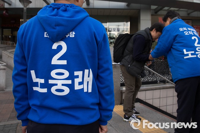 (서울=포커스뉴스) 20대 총선 공식선거 운동이 시작된 31일 오전 서울 마포구 공덕오거리에서 노웅래 더불어민주당 마포갑 후보측이 출근길 선거유세를 하고 있다.