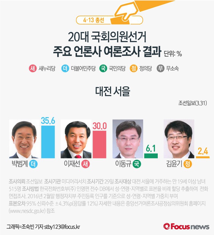 | △ [그래픽] 4.13총선 대전 서을 여론조사 결과 |