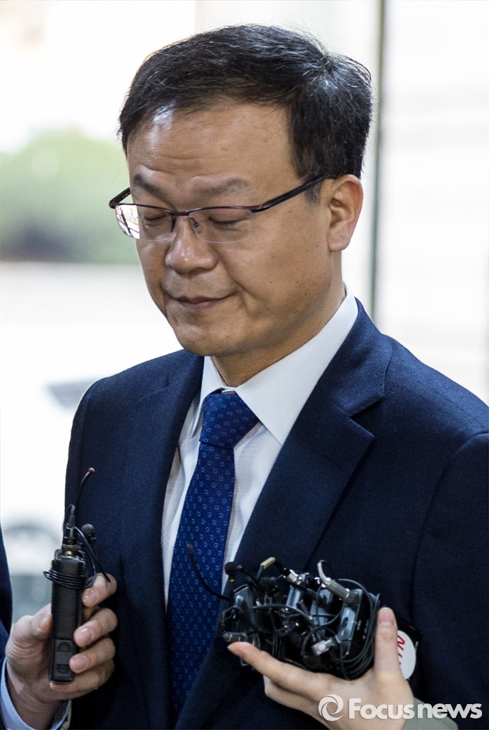 (서울=포커스뉴스) 광고기획사에서 뒷돈을 챙긴 혐의를 받고 있는 백복인 KT&G 사장이 영장실짐심사를 받기 위해 31일 서울중앙지방법원으로 들어서고 있다.