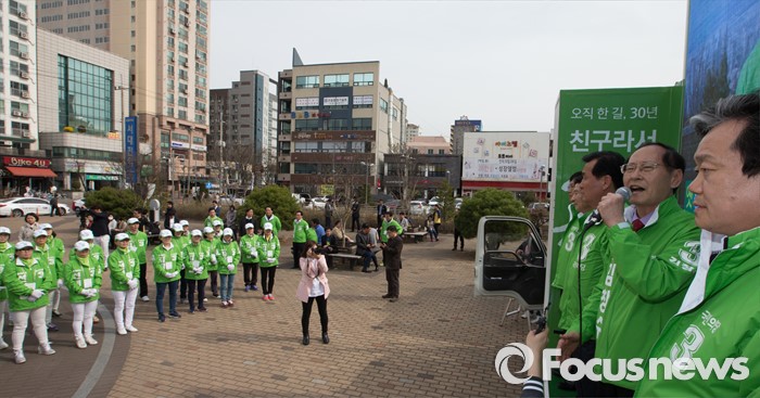 (대전=포커스뉴스) 31일 오후 대전 서대전역광장에서 열린 대전 국민의당 국회의원 후보자 출범식에서 후보자들이 지지를 호소하고 있다.
