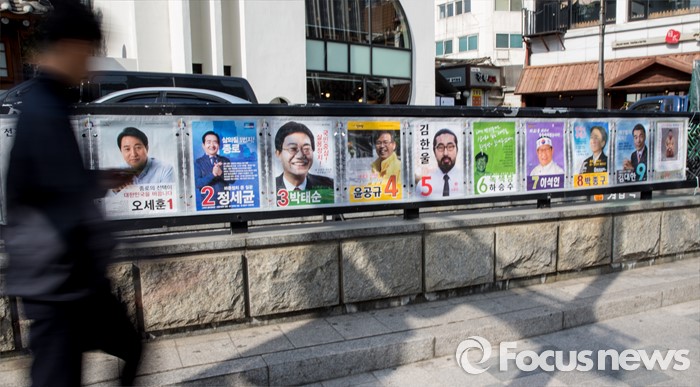 | △ 선거 벽보 지나치는 시민 |