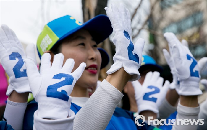 (안산=포커스뉴스) 20대 총선 공식선거 운동이 시작된 31일 오후 경기도 홈플러스 안산고잔점 앞에서 열린 더불어민주당 안산 집중유세에 참여한 선거운동원들이 지지를 호소하고 있다.