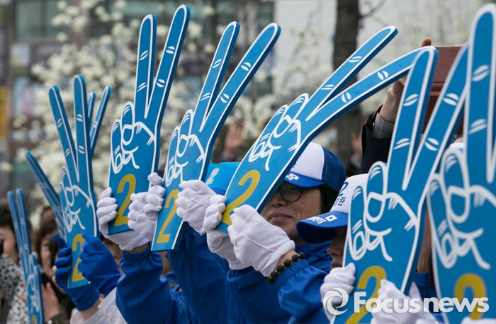 (안산=포커스뉴스) 20대 총선 공식선거 운동이 시작된 31일 오후 경기도 홈플러스 안산고잔점 앞에서 열린 더불어민주당 안산 집중유세에 참여한 선거운동원들이 지지를 호소하고 있다.