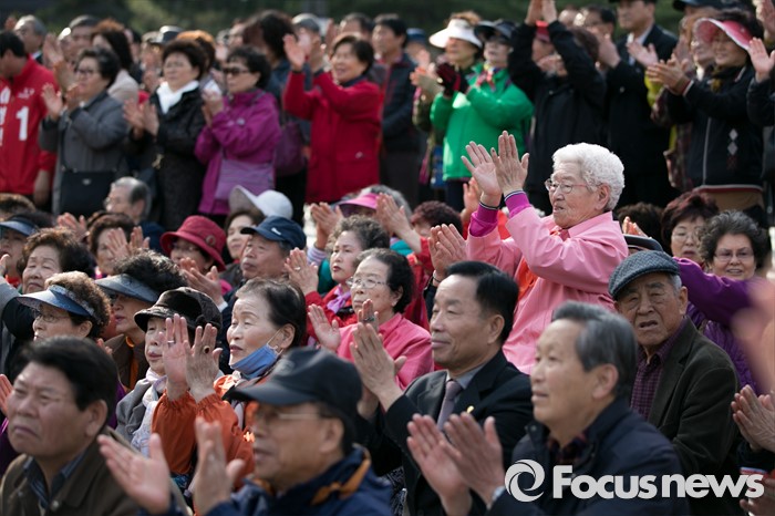(서울=포커스뉴스) 4.13 총선 공식선거운동이 시작된 31일 오후 서울 서대문구 독립문공원에서 시민들이 이성헌 새누리당 서대문갑 후보의 출정식을 지켜보며 박수 치고 있다.