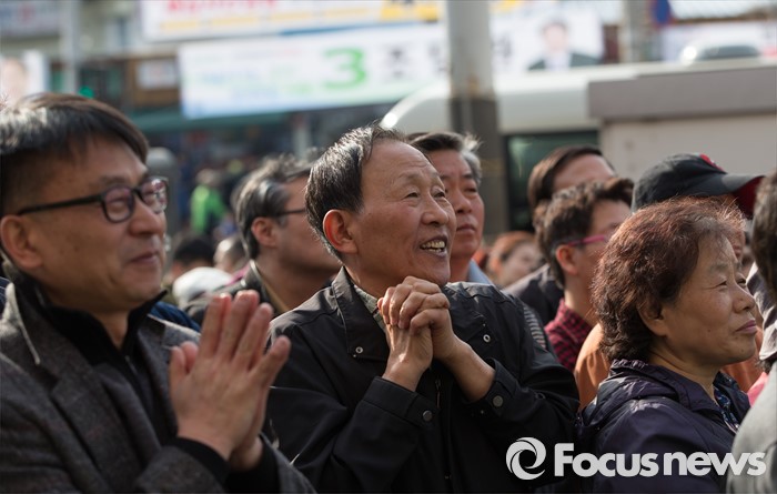| △ 김성식 후보 발언 경청하는 지지자들 |