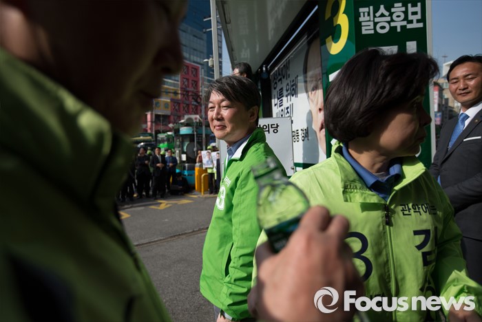 (서울=포커스뉴스) 총선 선거운동이 공식적으로 시작된 31일 오후 안철수 국민의당 상임공동대표가 서울 관악구 관악플라자 앞에서 김성식 관악갑 후보 지원 유세를 하고 있다.