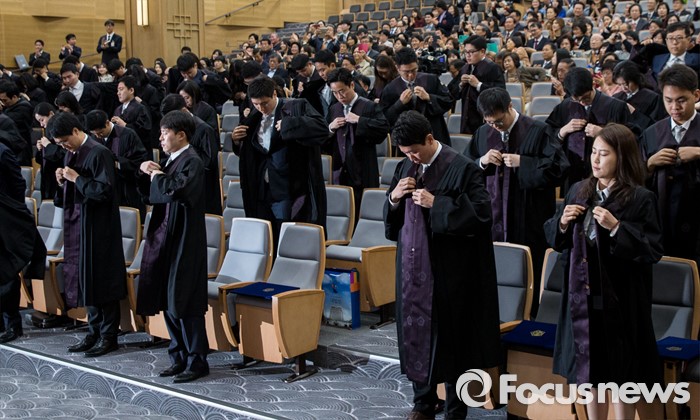 (서울=포커스뉴스) 1일 오전 서울 서초구 대법원 대강당에서 열린 신임 법관 임명식에 참석한 신임 법관들이 법복을 입고 있다.