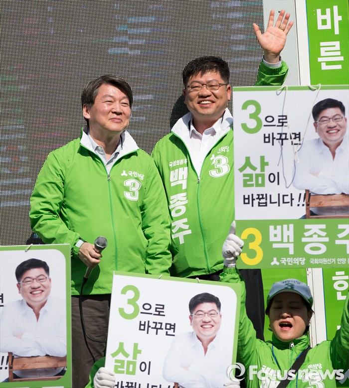 (안양=포커스뉴스) 안철수 국민의당 상임공동대표가 1일 오전 안양시 동안구 중앙시장에서 백종주 동안구갑 후보 지원 유세를 하고 있다.