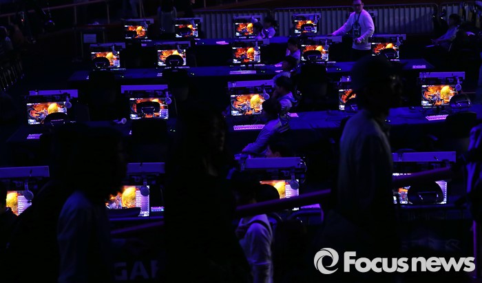 (서울=포커스뉴스) 1일 오전 서울 송파구 올림픽공원 올림픽홀에서 열린 '2016 히어로즈 오브 더 스톰 스프링 챔피언십' 개막식에 참여한 관람객들이 게임 체험존을 지나고 있다.