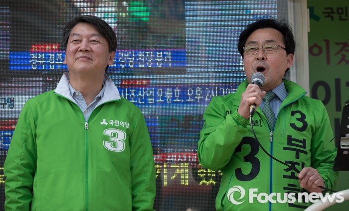 (안산=포커스뉴스) 안철수 국민의당 상임공동대표가 참석한 가운데 부좌현 단원구을 후보가 1일 오후 안산시 단원구 초지동에서 유권자들에게 지지를 호소하고 있다.
